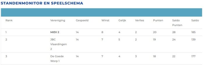 Door de inhaalwedstrijd van PV Markeer 1 te winnen (5-3) heeft MIDI 2 zich tot kampioen gekroond in hun poule van de 4e divisie.